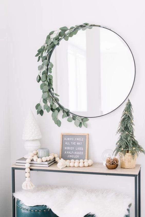 Si es muy pequeño, puede ir sobre el mueble recibidor y no hace falta que esté repleto de adornos, con sumarle algunas guirnaldas de luces cálidas es más que suficiente para llevar el espíritu navideño a este ambiente clave.