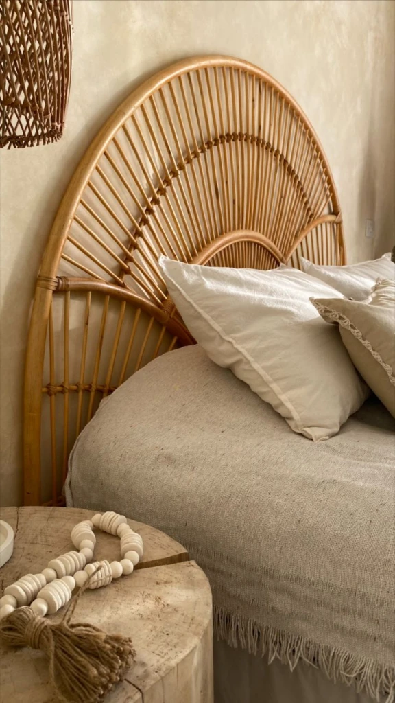 El estilo artesanal sigue en auge, y los respaldos de cama de ratán y bambú marrcan tendencia. Su estructura liviana pero resistente aporta un toque bohemio y relajado, ideal para quienes buscan un dormitorio con alma y personalidad. Además, combinan muy bien con madera clara y detalles en lino o algodón.