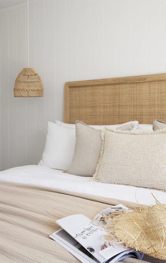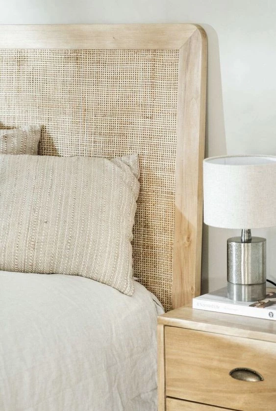 Si bien en la mayoría de los casos estos diseños de respaldos de cama se tapizan con telas para sumar un extra de comodidad, también los veremos mucho en madera con detalles cannage y fibras naturales aportando un plus de calidez y naturalidad.