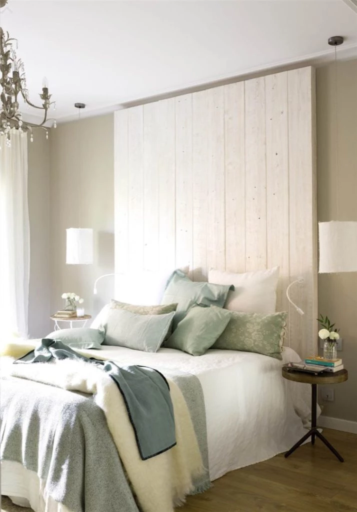 La clave para que este tipo de cabecero quede bien, es que su tapizado sea acorde a los tonos de la pared y que la ropa de cama también esté en sintonía.