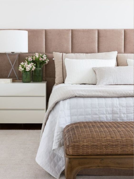 Los respaldos tienen un rol clave en el dormitorio. Y es que además de enmarcar la cama y darle una impronta personal al espacio, protegen del frío de la pared, aíslan los ruidos y mantienen "a salvo" la pared del roce de la cama.