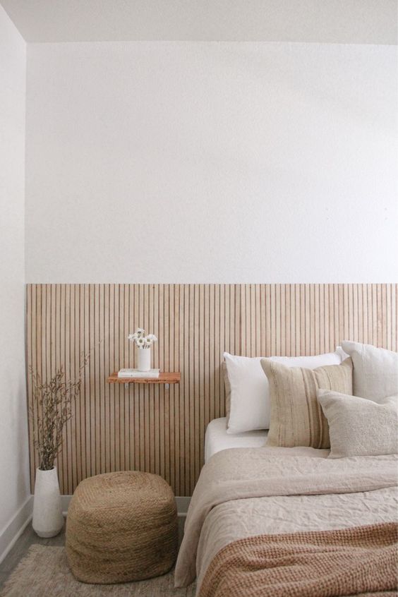 Este tipo de respaldo aporta mucha calidez y es una idea súper simple de llevar a cabo. "Podés comprar un listón de una madera que te guste y mandarlo a cortar. Pueden ser tacos iguales o jugar con la profundidad, cortándolos de diferentes espesores", asegura Constanza.