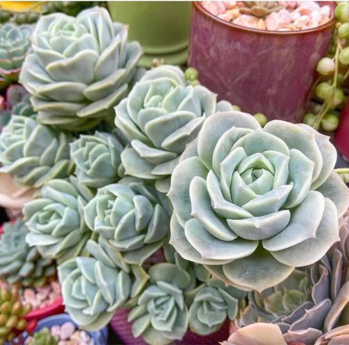 Echeveria Pollux (su nombre científico) es una planta suculenta que forma parte de la familia Crassulaceae. El género Echeveria contiene más de 350 especies descritas hasta el momento y es muy famoso en los jardines porque cada una tiene diferentes formas y colores.