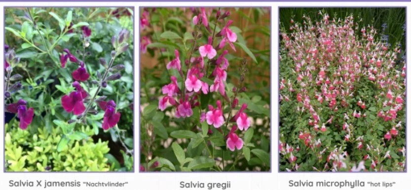 Existen salvias herbáceas, anuales (un año o resiembra) y bienales (dos años para que dé flor, resiembra o sembrar). También hay herbáceas vivaces o perennes, sub arbustos y verdaderos arbustos.