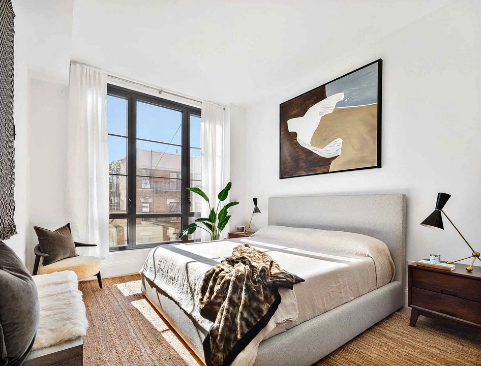 Los tres dormitorios del lujoso departamento se destacan por ser muy luminosos gracias a los amplios ventanales que van de piso a techo. La gama de los tonos tierra se hace presente, al igual que el mobiliario con aires retro.