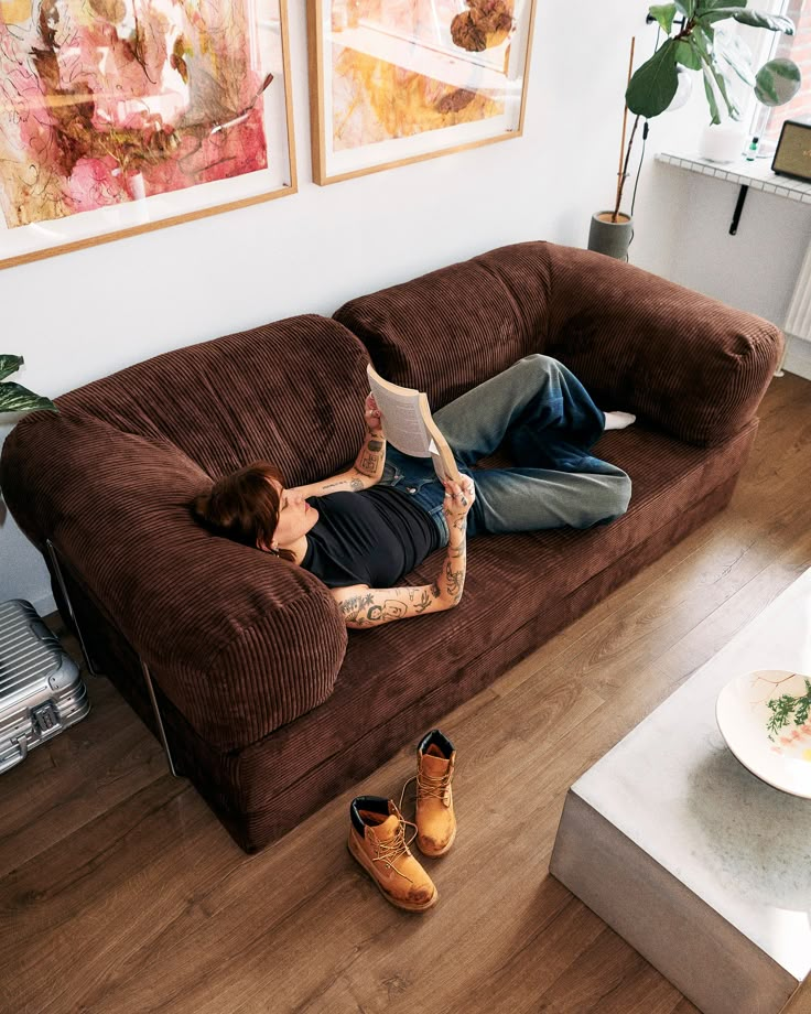 Adiós líneas duras, bienvenidas las curvas. Los sofás se inspiran en formas orgánicas, con apoyabrazos bajos, respaldos envolventes y estructura acolchonada. ¿La idea? Que el sillón sea un refugio, un espacio donde el cuerpo se relaje y fluya.