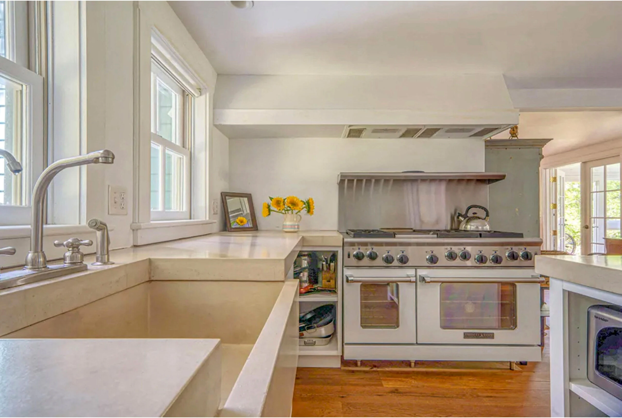 La cocina es el corazón de la casa: es tan linda como funcional. Tiene electrodomésticos de alta gama de acero inoxidable y una isla central con espacio para almacenar diferentes utensilios y productos.