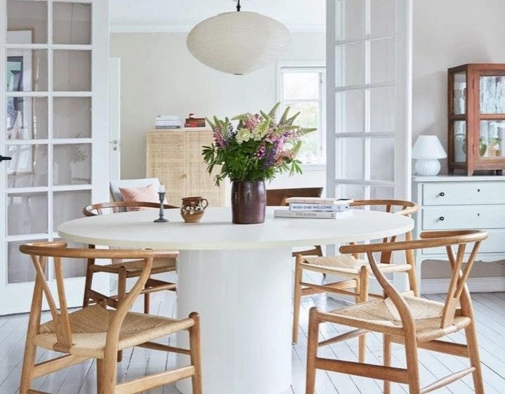 - Por su forma, la mesa redonda puede encajar en aquellos espacios más reducidos