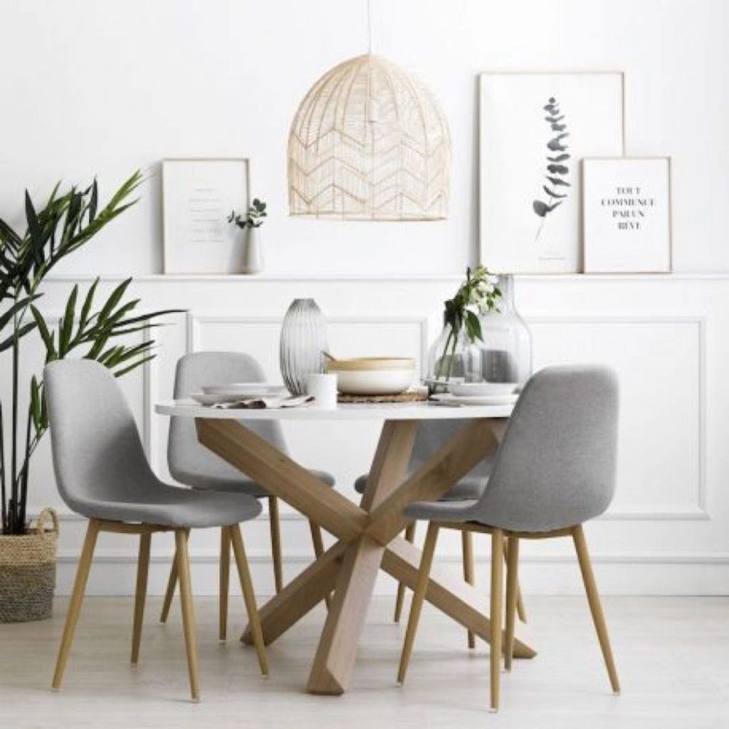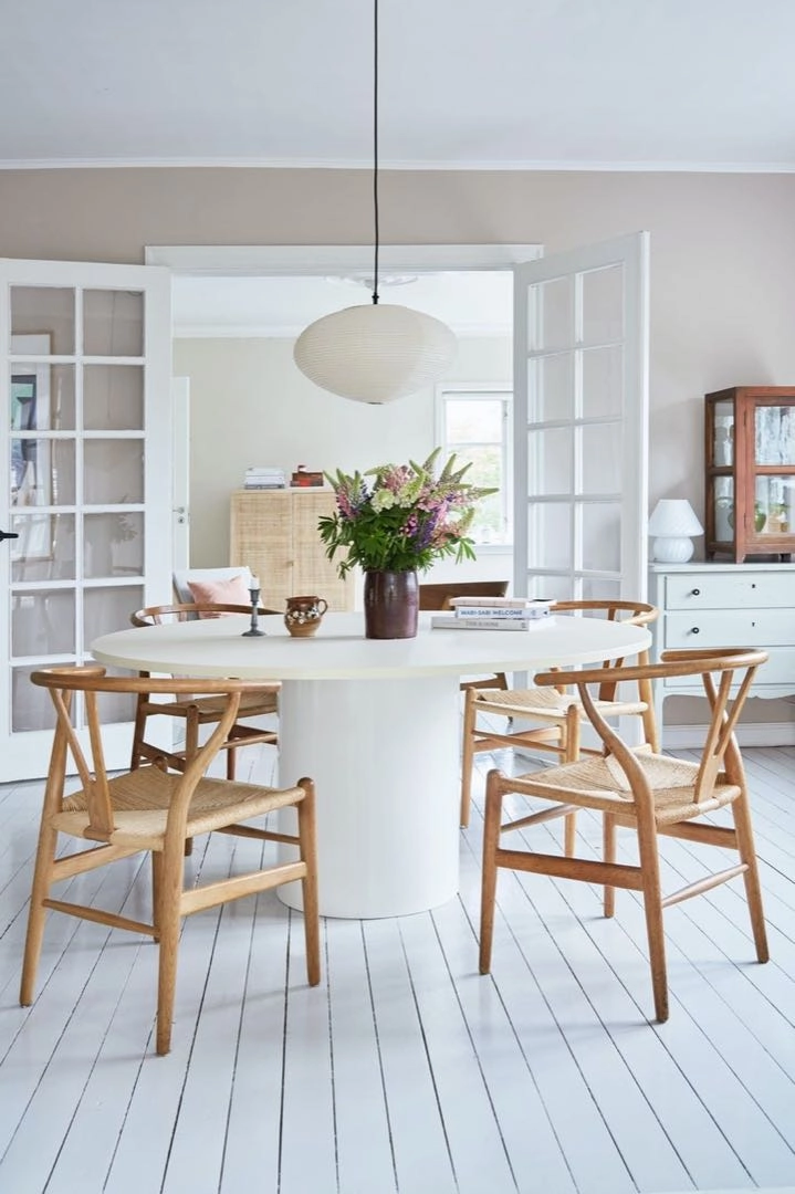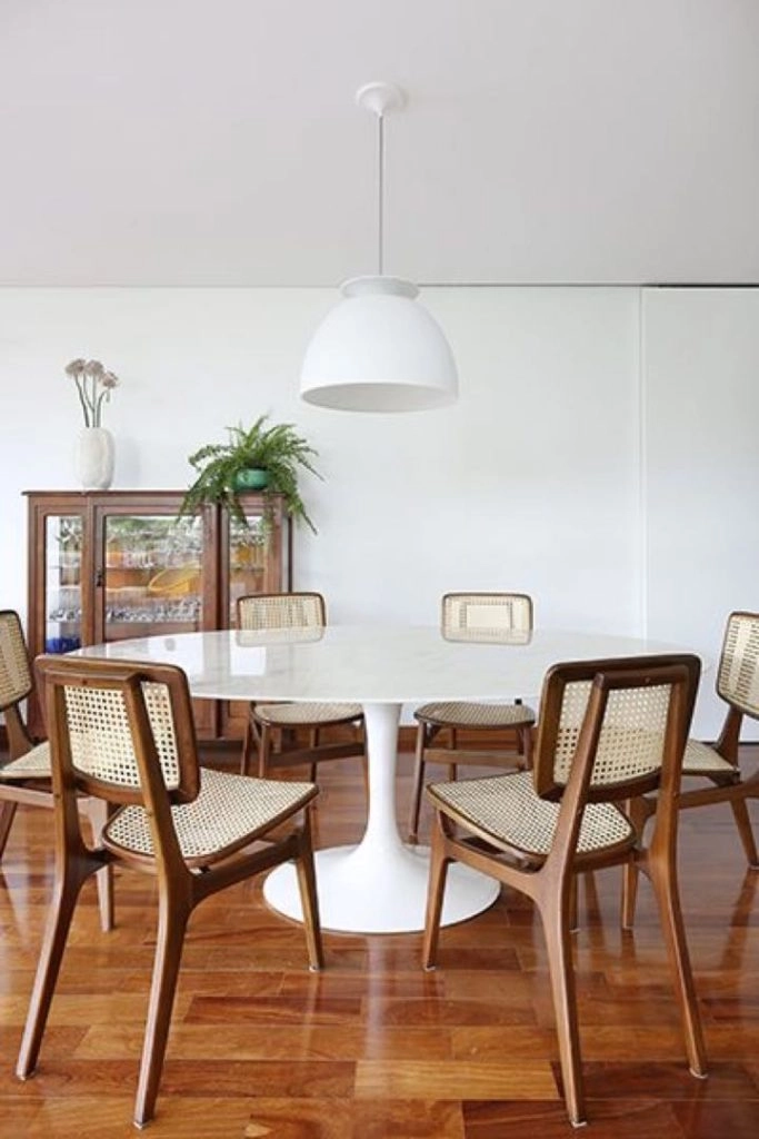 Si disponés de un ambiente más bien cuadrado pero espacioso, una mesa redonda quedará perfecta. Pero si el espacio es chico, te conviene siempre una mesa rectangular que puedes acercar a la pared de ser necesario, o incluso completarla con un banco directamente apoyado en la pared en lugar de sillas, algo que con una mesa redonda se complica.