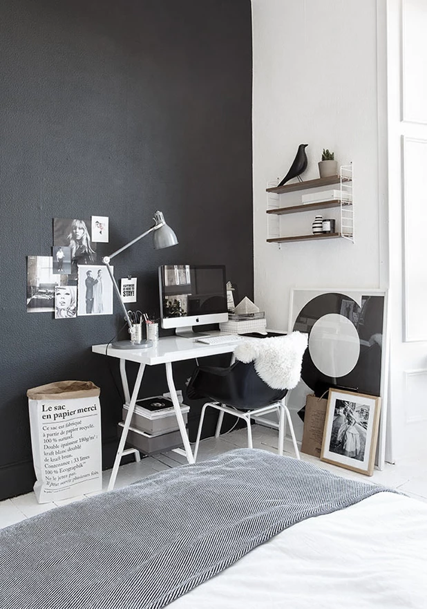 Sin lugar a dudas, forman la dupla más acertada. Con el blanco como protagonista en la mayoría de las paredes, el negro se puede explayar sutilmente sólo en una, sin oscurecer ni agobiar. Puede ser en la predominante o simplemente en aquella que se busque resaltar.