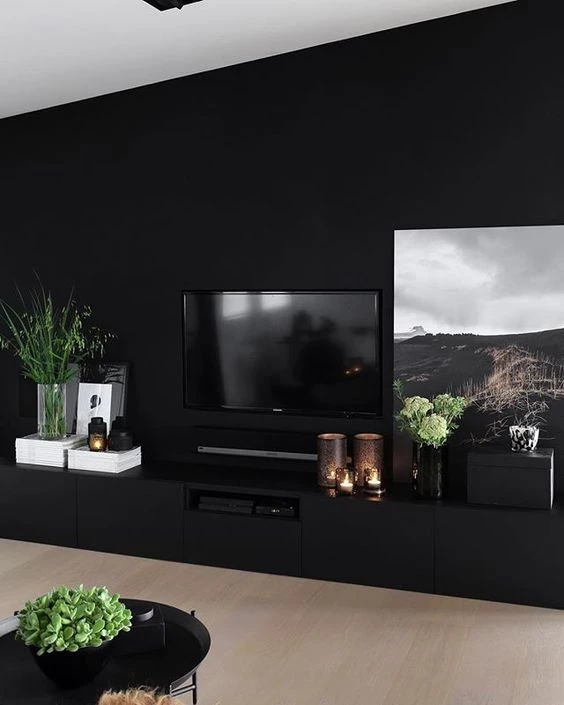 En el extremo de esta tendencia se encuentran los ambientes que apuestan todas las fichas al negro, el cual se extiende por todas las paredes. Si bien es una propuesta muy moderna, para que el espacio no resulte oscuro y agobiante conviene tener pisos claros o símil madera, techos blancos y complementos claros. Los amplios ventanales con un buen caudal de luz también serán indispensables.
