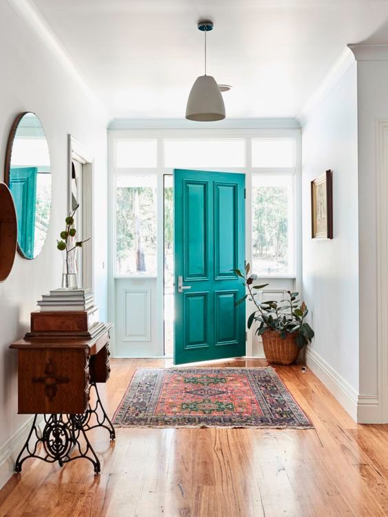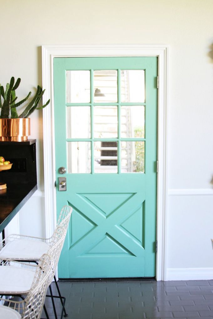 El toque alegre de una puerta color aguamarina. (Pinterest).