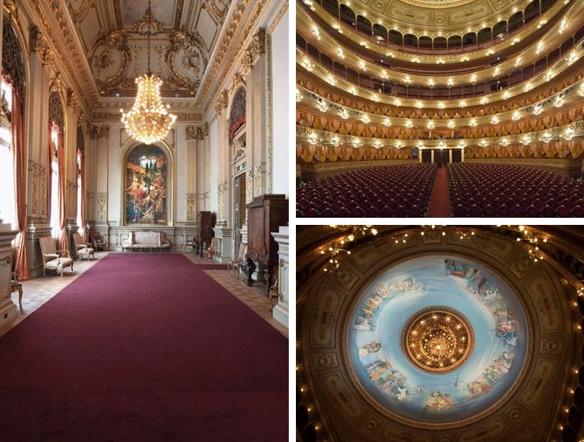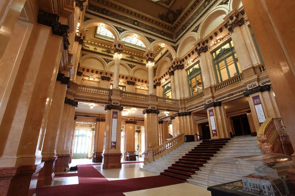La arquitectura y la ornamentación son tan inigualables como los cuerpos artísticos. En el Hall, se aprecia decoración en mármol de Verona, Carrara y Portugal y, en el Salón Dorado hay hermosos vitrales hechos en Francia.