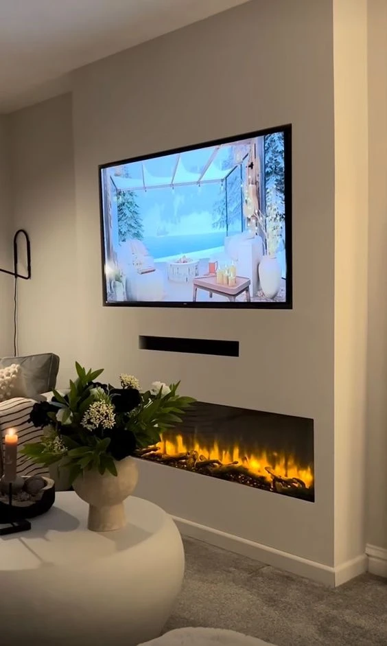 - TV sobre chimenea eléctrica LED