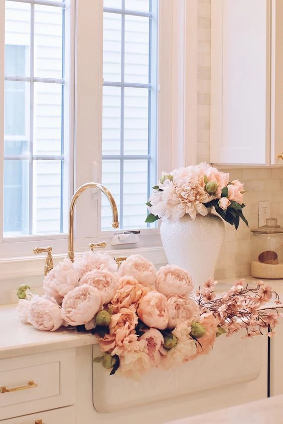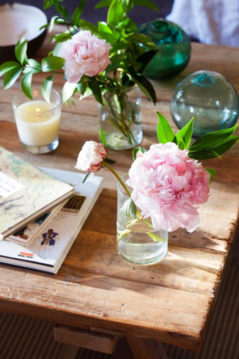 A las peonías también se las puede ver luciéndose como centro de mesa en un florero sólo con agua (en estos casos conviene cambiar el agua todos los días y cortarle la vara a unos 90 grados para mantenerla radiante el mayor tiempo posible).