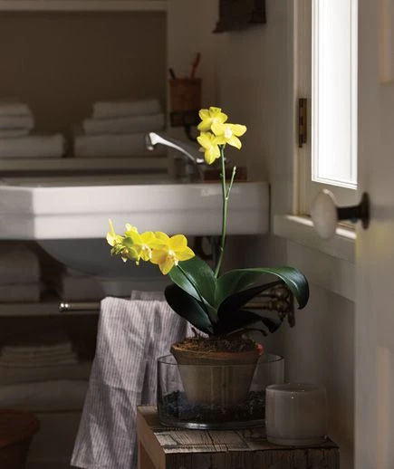 Si bien es cierto que necesitan de algunos cuidados específicos como toda planta, la Phalaenopsis es la orquídea de cultivo más fácil y las condiciones de humedad, iluminación y temperatura del baño resultan ideales para ella.