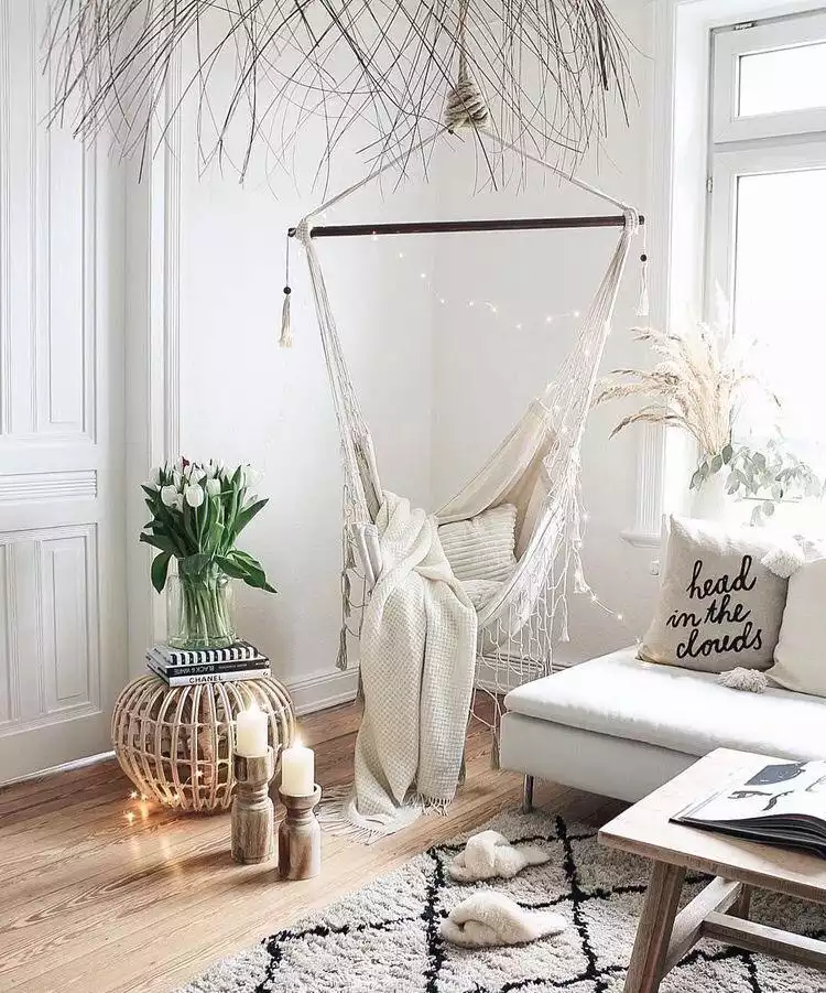 Crear un espacio especial es característico del estilo hygge. Incluso puede ser un rincón de relax conocido como "hyggekrog" rodeado de almohadones, guirnaldas de luces cálidas, mantas abrigadas, etc.
