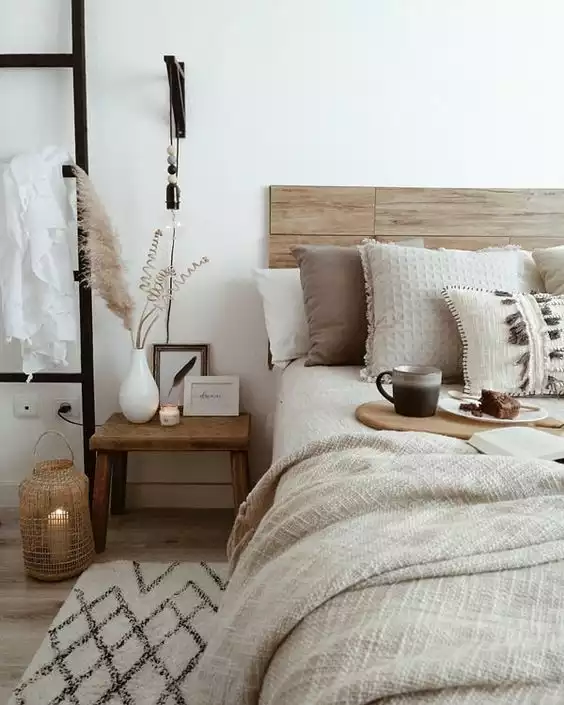 La madera siempre es protagonista, tanto en pisos como en techos y en diferentes muebles. Y los textiles naturales como lana, lino o algodón también son clave y suelen estar presentes en alfombras, almohadones, mantas nórdicas, etc.