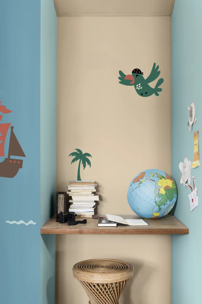 Delimitar el lugar destinado a las tareas escolares facilita la concentración y los resultados. Involucrarlos en el proceso puede hacerlos sentir más seguros y a gusto al momento de estudiar. La pintura aquí es el recurso más simple y fácil de utilizar para alcanzar el objetivo. Ya sea a partir de figuras geométricas o bien tonos de diferentes intensidades a los del resto del ambiente, pueden generar esos límites que necesitamos.