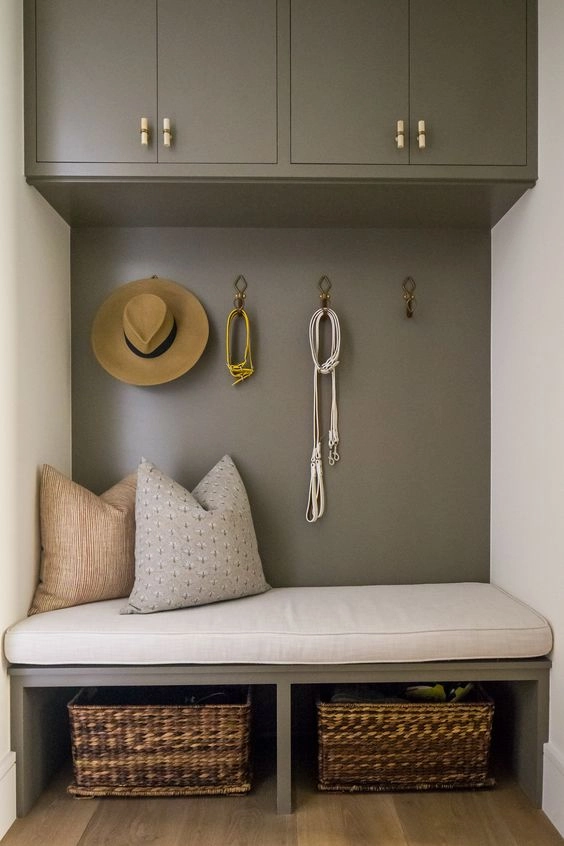 Otra alternativa simple y popular, es utilizar un banco corrido, canastos, estantes y percheros. Con un poco de imaginación se puede armar algo funcional y estético que se acomode a la realidad de cada uno.