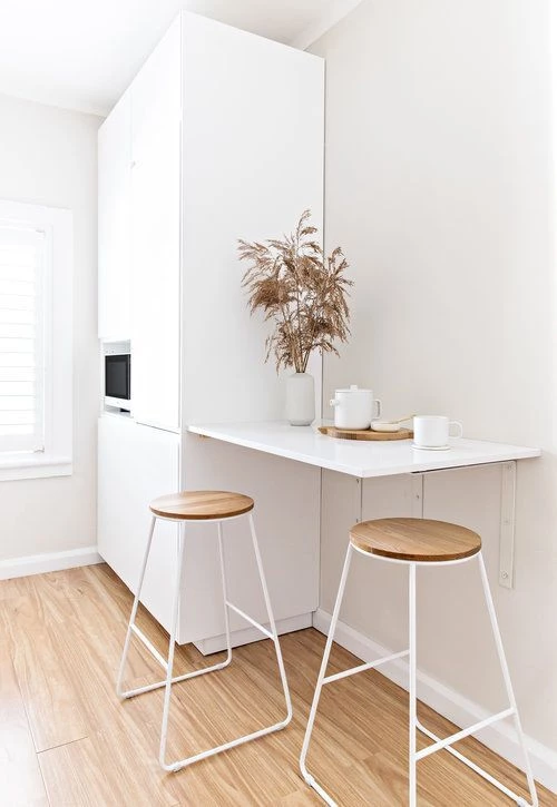 Los rincones de desayuno quedan increíbles junto a una ventana. Una opción muy canchera puede ser colocar un lindo tablón de madera con bisagras y sumar un par de banquetas. La clave en estos casos, es elegir muebles y ubicarlos estratégicamente para que no impidan el paso de la luz natural durante la mañana.