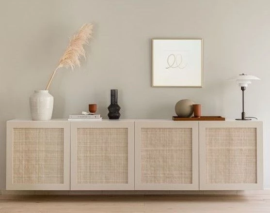- Altura: cuanto más alto sea el vajillero, más pesado resultará visualmente. Es por eso que la experta recomienda despegarlos del piso a través de patas altas, o ir por la opción de vajilleros suspendidos en la pared con el soporte escondido. De esta manera, se contribuye a generar una sensación continuidad visual en el espacio.