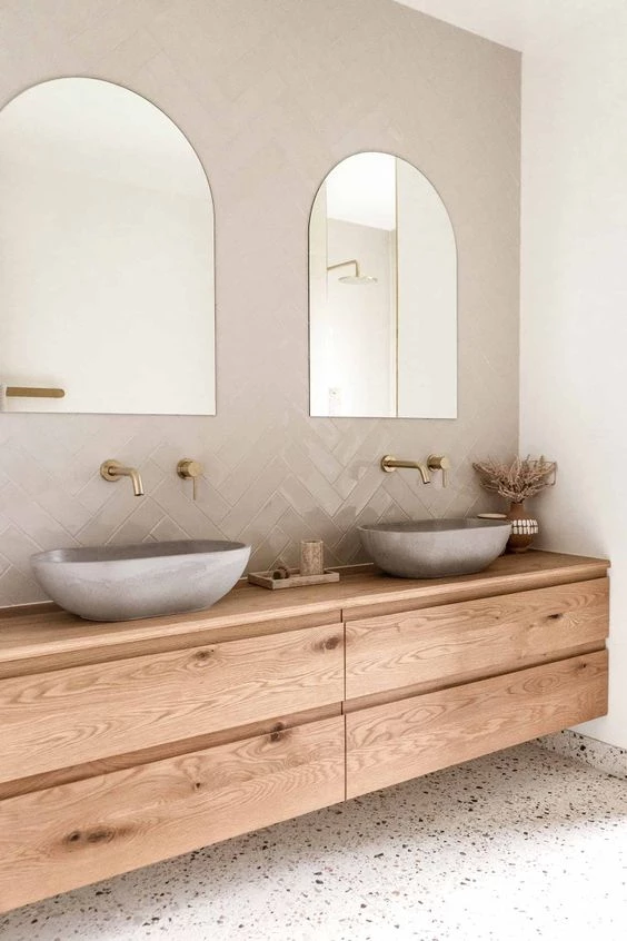 Como mencionamos anteriormente, las griferías de pared no ocupan espacio ya que dejan la zona de la bacha totalmente liberada. Esto hace que sean muy populares en baños que persiguen una estética minimalista y simple, pero elegante y canchera a la vez.