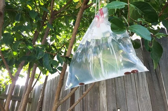 Podés colgarla donde quieras, desde una ventana hasta una puerta, así cuando las moscas intenten entrar quedarán desorientadas. Esto ocurre porque la luz que se refleja en el agua crea un efecto visual para los ojos superdesarrollados de estos insectos, el cual resulta muy desagradable y las asusta.