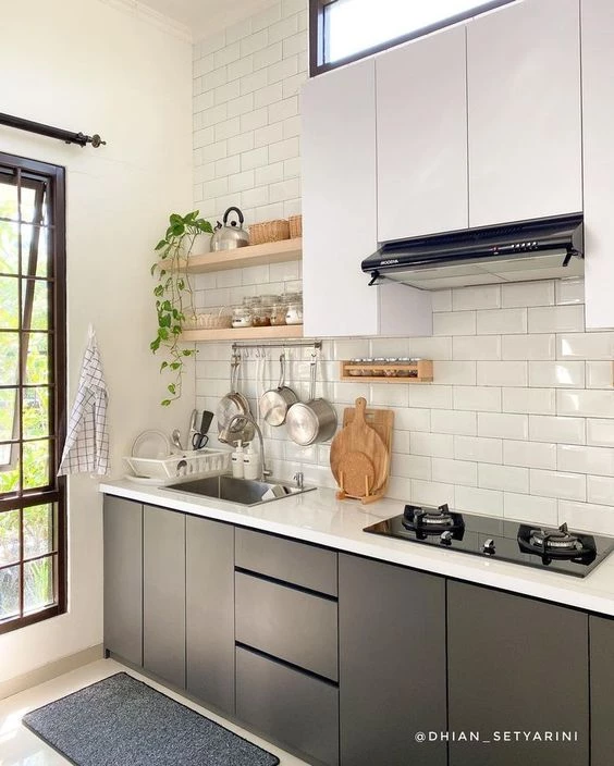 En espacios chicos, rige la regla menos es más. Por eso, una de las buenas medidas para hacer que el espacio parezca más amplio o que no abrume, es unificar colores y materiales. Por ejemplo, podés usar el mismo material para mesadas y alzadas, y apostar por el blanco absoluto o jugar con la monocromía con cualquier otro color.