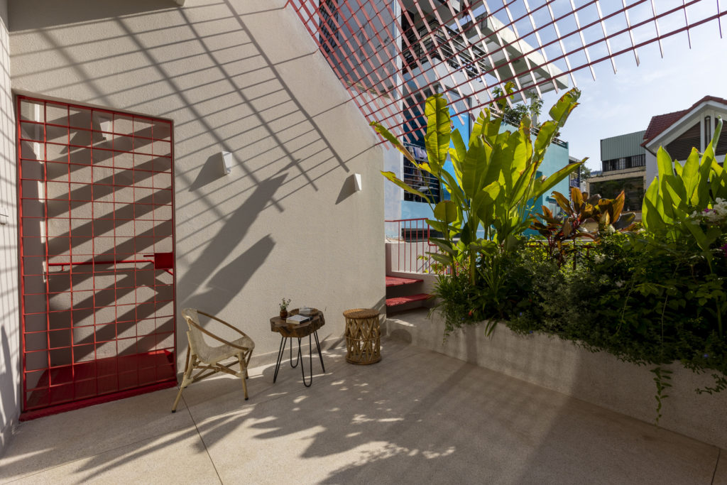 Así, 'Nhaso 27 House' sigue una estrategia de color que mantiene colores simples y más claros en el interior y deja un rojo brillante para los elementos arquitectónicos exteriores, dinamizando la fachada y, en consecuencia, el barrio.