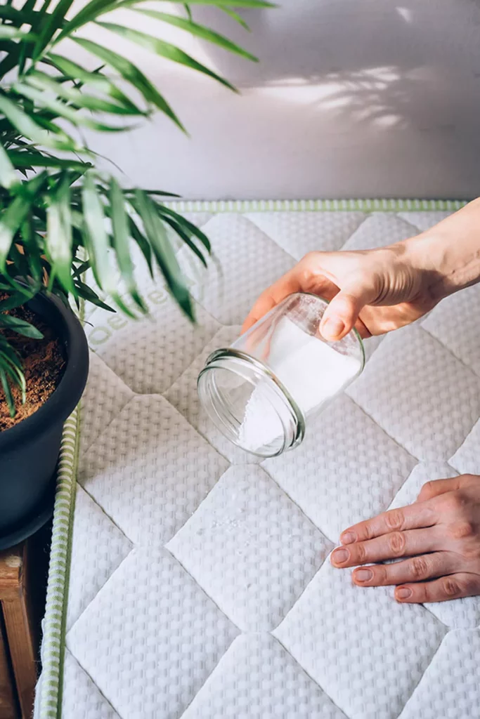 3. Espolvoreá una capa de bicarbonato de sodio sobre las zonas humedecidas con la mezcla.