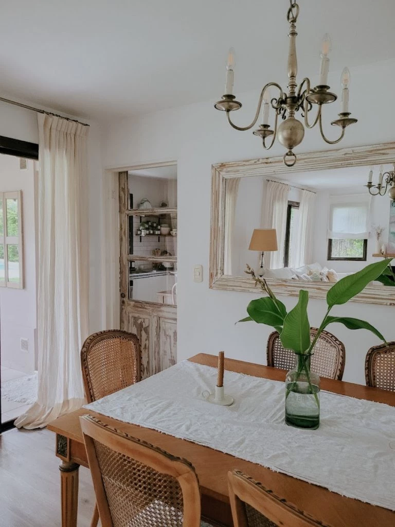 "Suele pasar que cuando nos mudamos a una casa más grande nos cuesta dimensionar los nuevos espacios. Supongo que por eso, la "pifié" a la hora de comprar un espejo para la pared del comedor y me quedó demasiado chico. Pero cuando el año pasado lo cambié por otro del mismo estilo pero mucho más grande, la diferencia fue abismal. ¡Increíble lo que agranda y cómo hace lucir todo!", expresó la influencer en su cuenta de Instagram y mostró el antes y el después.