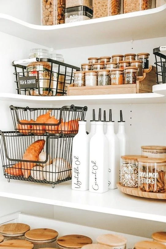 Si el espacio lo permite, se pueden colocar cajones con guías que incluso pueden utilizarse como contenedores de frutas y verduras. Agrupar por tipo de alimentos es otro ítem fundamental que va a contribuir al orden y la organización de la despensa.
