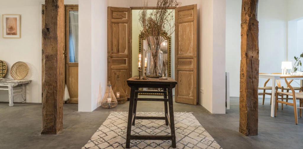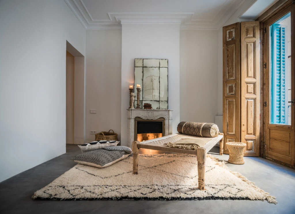 Todos estos elementos se combinaron con acabados actuales y mobiliario de diseño bohemio y escandinavo del siglo XX, que fomentan el diálogo entre lo antiguo y lo moderno.
