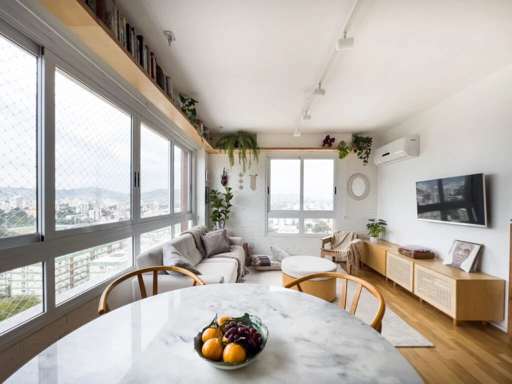 Ubicado en un barrio elevado en la ciudad de Porto Alegre, este departamento de 65 m2 fue gestado antes de la pandemia y ejecutado durante la misma.