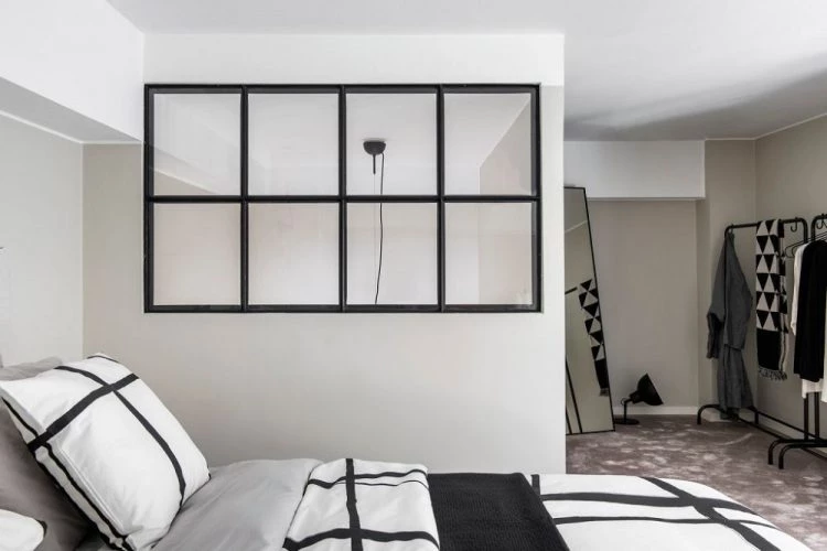 Simple y funcional. Al no contar con armarios, los percheros a la vista que son tendencia esta temporada, son los protagonistas para guardar la ropa.