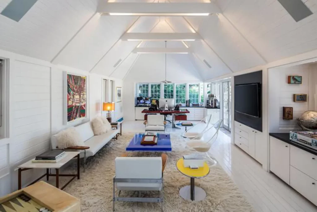 Pitt contrató al estudio de arquitectura alemán Graft para construir una escapada zen en Hollywood Hills. El actor fue su propio diseñador de interiores para este oasis modernista de piedra y cristal. Las paredes de piedra de mica, el suelo de pino y las abundantes claraboyas contribuyen a añadir textura y carácter al impoluto espacio.