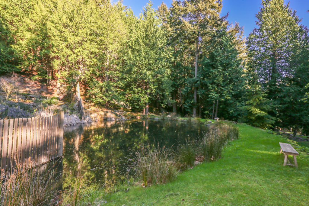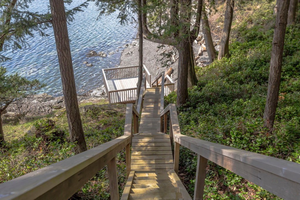 Los exteriores que rodean la vivienda son un lujo y es imposible no enamorarse de las vistas increíbles que ofrecen. Cuenta con un sendero privado que conduce directamente hacia las costas, además de otras atracciones como una mini cabaña, un arroyo y hasta un jardín asiático.