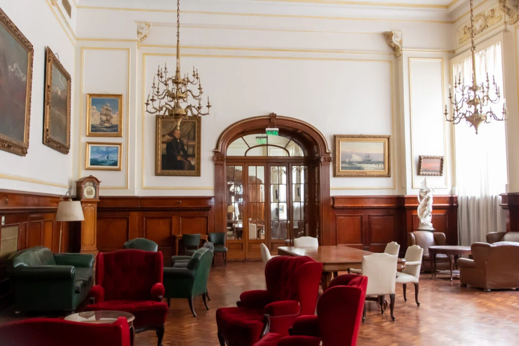 Entre los salones más impresionantes está el Salón de Socios, una cápsula del tiempo que mantiene intacto el mobiliario original.