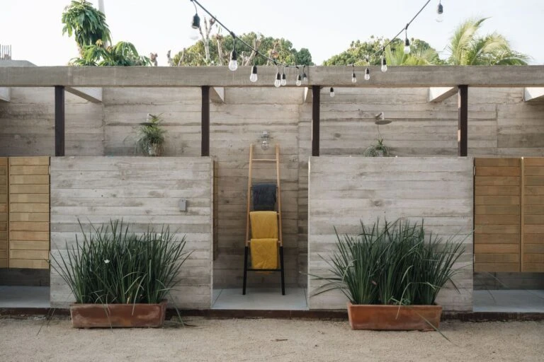 El programa arquitectónico encontró soluciones fuera de lo convencional, ya que logra repartir algunas áreas esenciales de la casa a lo largo de un espacio externo: cuarto de lavado, almacén, un baño de invitados, y otros espacios como un cuarto de máquinas, un funcional rack para tablas de surf, una bodega para guardarlas bajo llave y duchas exteriores privadas.