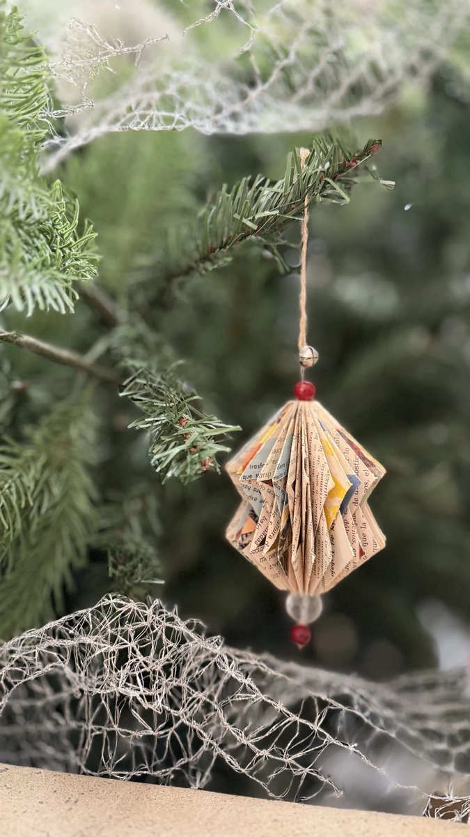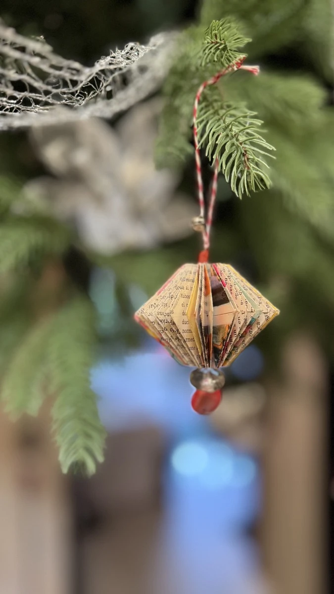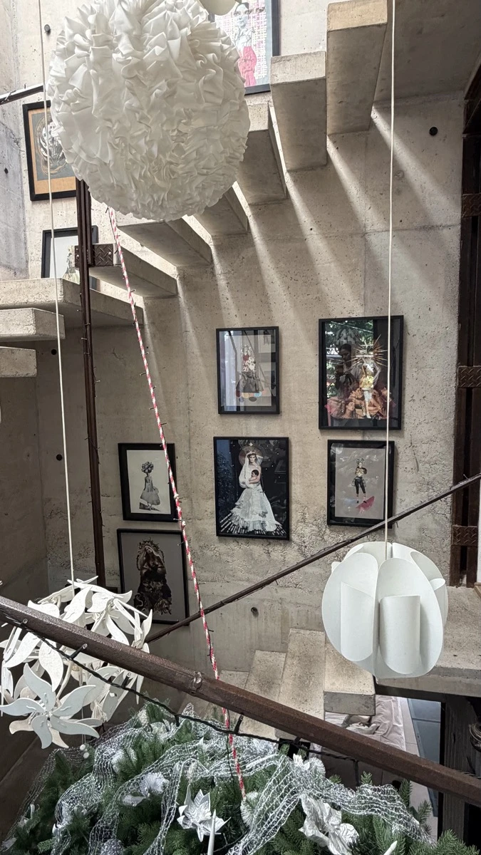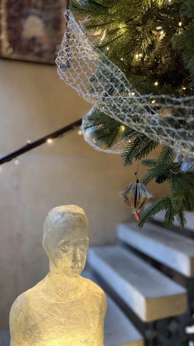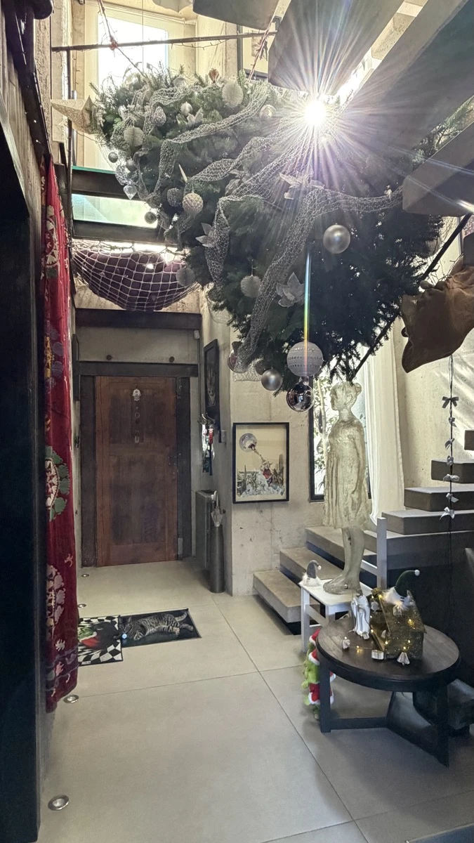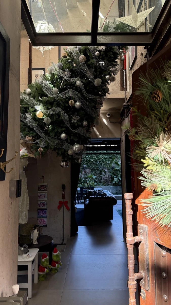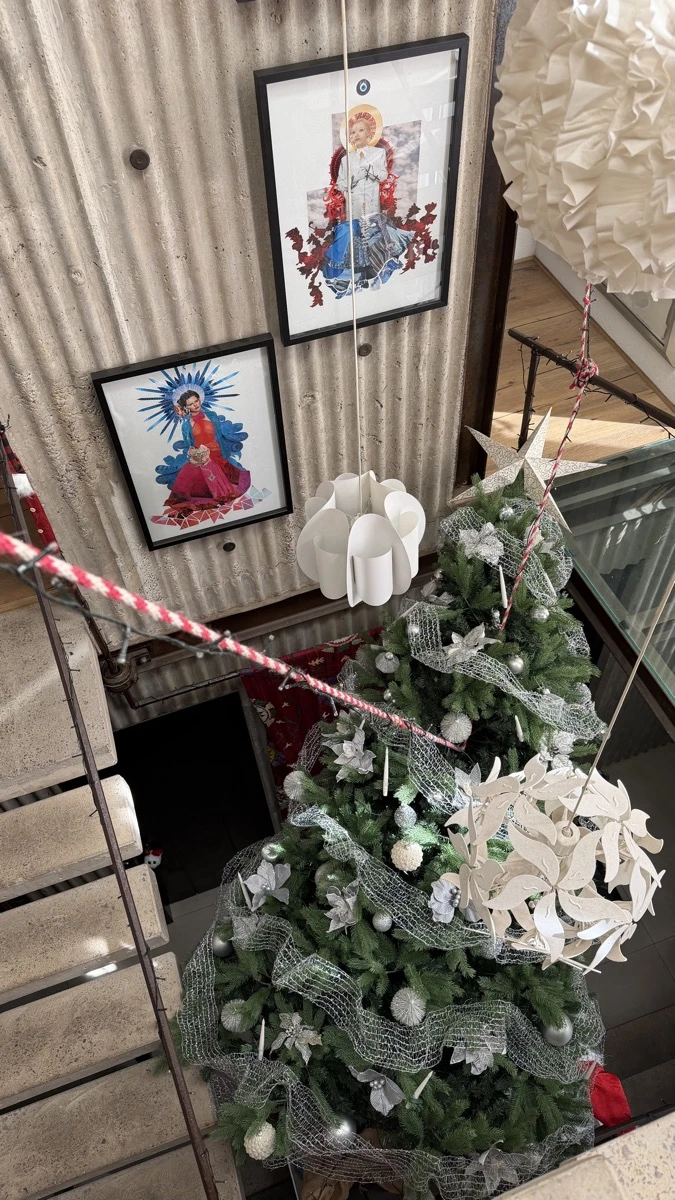 “El árbol de Navidad colgado invertido tiene sus orígenes posiblemente en el siglo XVII”, cuenta Laura sobre la inspiración e influencia de su singular árbol navideño inclinado y suspendido.