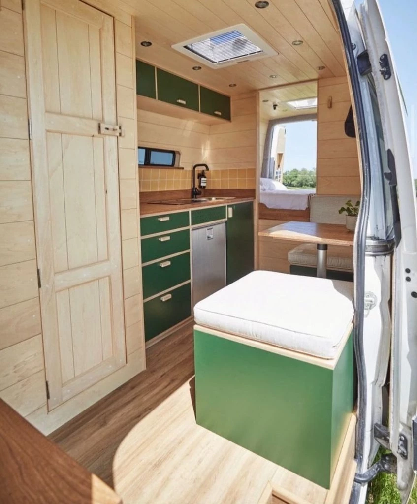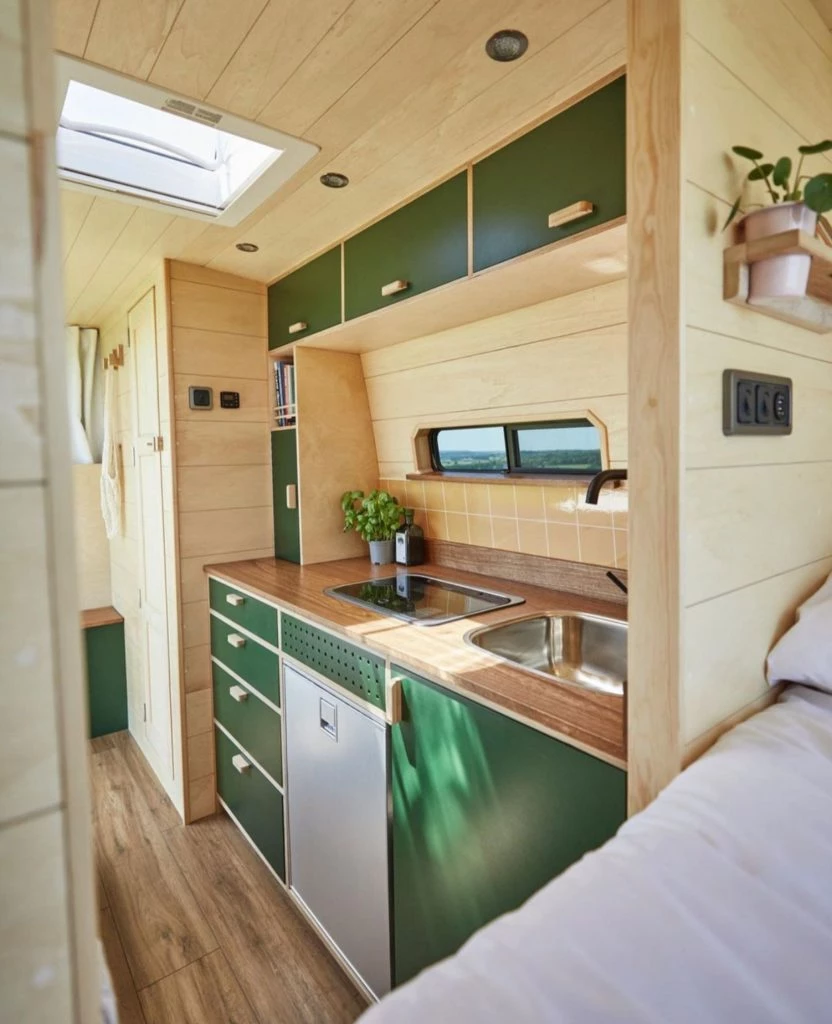 Con la madera y el verde como protagonistas, esta caravana simple pero muy funcional, se convirtió en la candidata perfecta para encender los motores y recorrer las mejores rutas del mundo en un viaje repleto de aventuras.