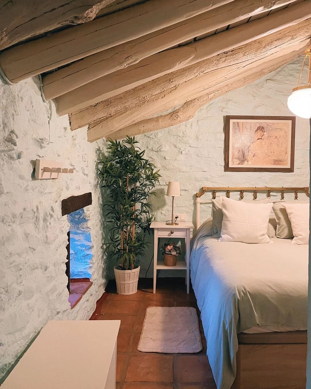 Este bellísimo alojamiento histórico conserva el encanto de una casa rural tradicional española de piedra, cal y madera.