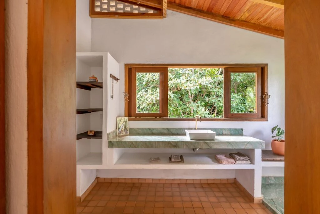 Con su orientación hacia la salida del sol y la proximidad al exuberante bosque de la Mata Atlántica, la casa ofrece sombra natural y una conexión íntima con la naturaleza.