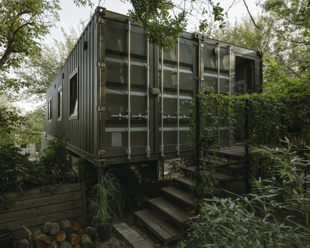 Compuesta por dos contenedores marítimos adaptados perfectamente, tiene 60 m2 de espacio habitable y se puede transportar y emplazar fácilmente en casi cualquier terreno.