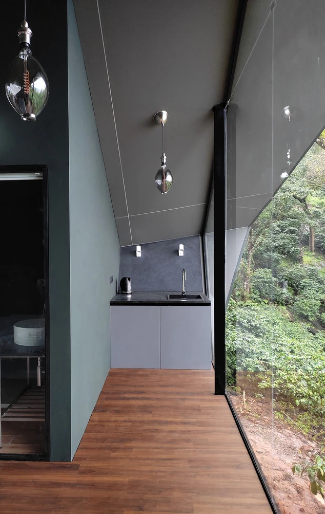 La idea de construir formas contemporáneas en medio de la naturaleza con la menor huella ecológica posible, le llevó al equipo a cargo del proyecto un año total de diseño y curaduría de experiencias espaciales, detalles meticulosos e ingeniería para la prefabricación y el montaje.