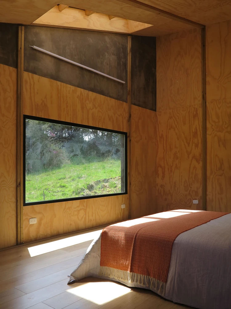 Al interior, los muros y cubierta son forrados en una capa de pino laminado cerrando al interior el sistema de control climático con un material que brinda tanto acabado como control de temperatura.