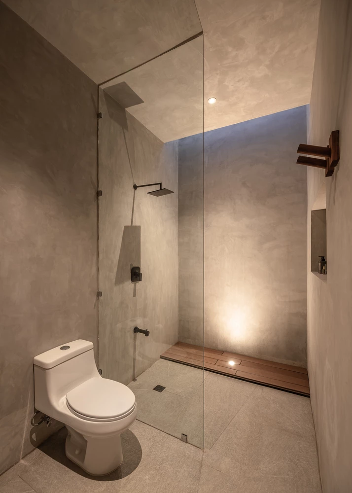 La propuesta se plantea como un basamento de piedra de la región, llamada Tóh, que protege el interior de la casa y sobre el cual se asienta un volumen de concreto pulido, este destaca por un gran ventanal que se protege del exterior a través de una celosía de bajareque.