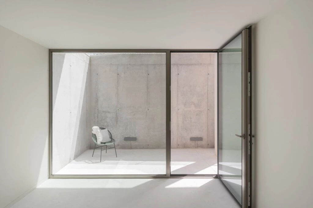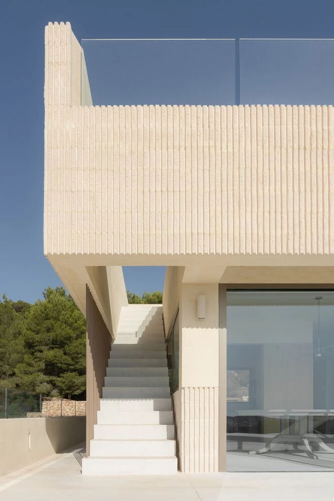 Esta bellísima casa de vacaciones española está compuesta por simples volúmenes rectangulares desplazados en planta para crear una estética dinámica a pesar del limitado espacio del terreno.