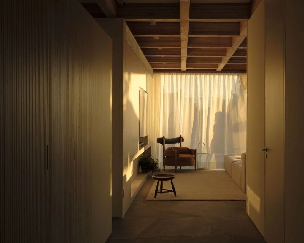 Se optó por ocultar la climatización en los muebles empotrados y las paredes, dejando la estructura del techo lo más intacta posible.